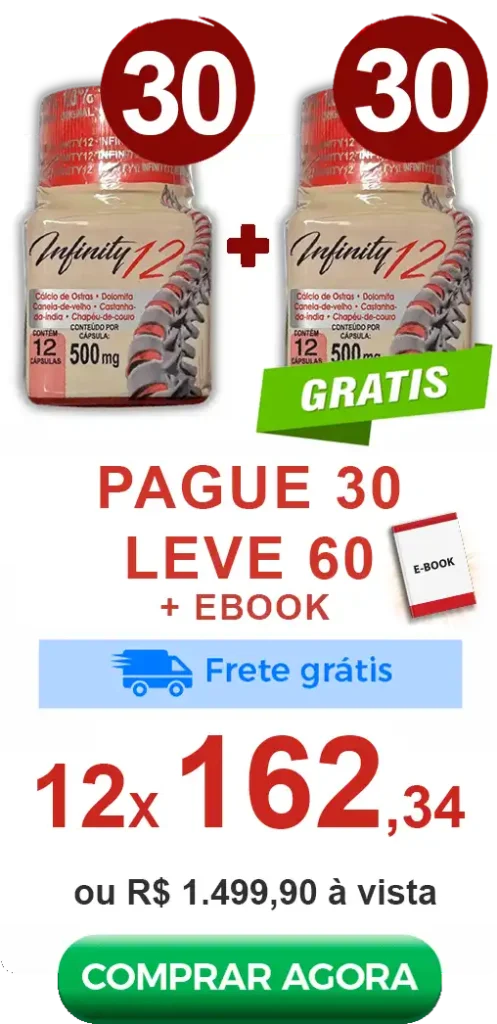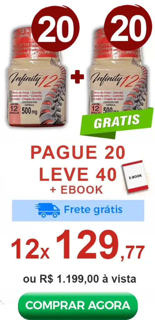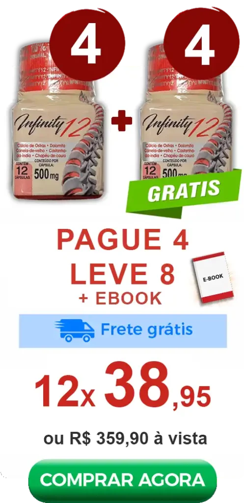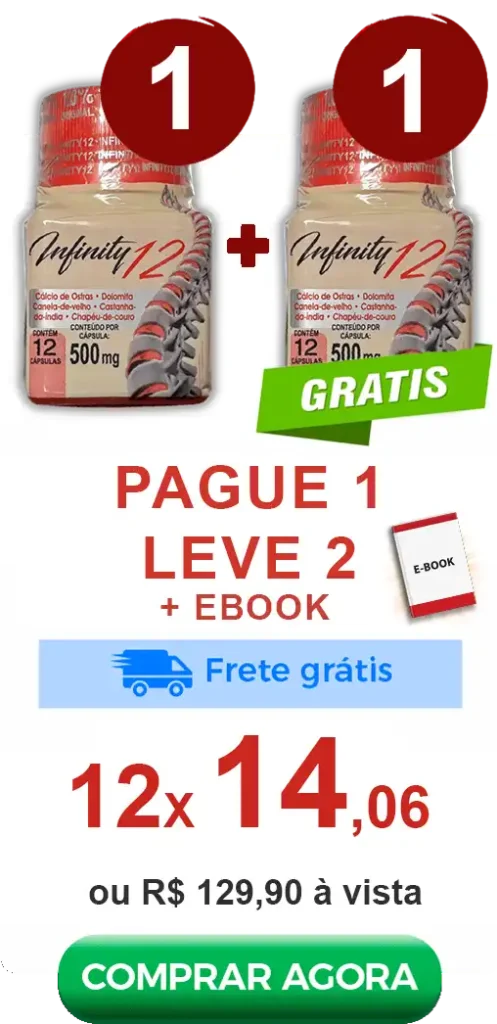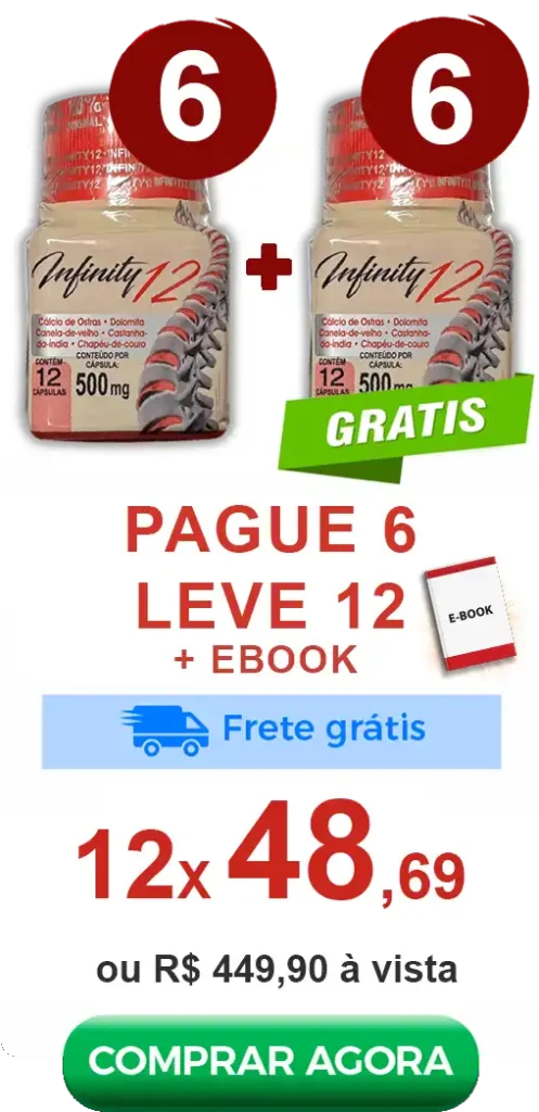 Com uma combinação estratégica de nutrientes, o Infinity 12 atua no suporte da estrutura articular, ajudando você a manter mais leveza nos movimentos e qualidade de vida no dia a dia.